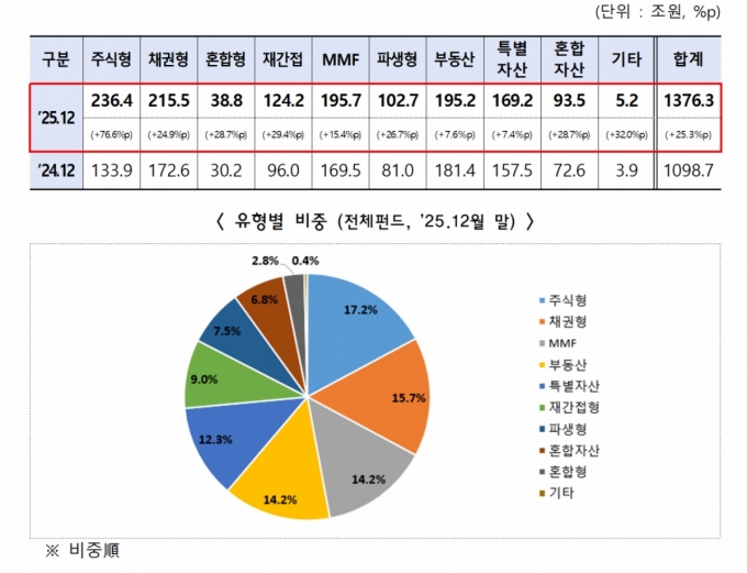 ƯÈ÷ ÁÖ½ÄÇü ÆÝµå´Â Àü³â ´ëºñ 76.6% ´Ã¾î³ ¼øÀÚ»ê 236Á¶4000¾ï¿øÀ» ±â·ÏÇÏ¸ç ³ôÀº ¼ºÀå¼¼¸¦ º¸¿´´Ù. ÁÖ½ÄÇü ÆÝµå ºñÁßÀº 2024³â 12.2%·Î Àüü 5À§¿¡¼ 2025³â ºñÁßÀ» 17.2%·Î 1À§°¡ µÆ´Ù.