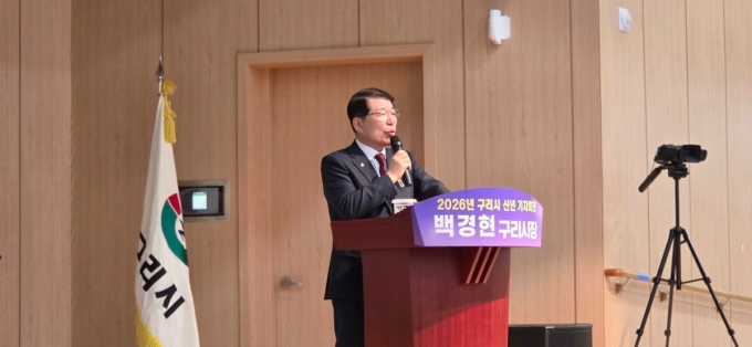 ¹é°æÇö °æ±â ±¸¸® ½ÃÀåÀÌ 28ÀÏ ¿ÀÀü ±¸¸®½Ã ¿©¼ºÇູ¼¾ÅÍ¿¡¼ ¿¸° ½Å³â ±âÀÚȸ°ß¿¡¼ Áö³ÇØ ½ÃÁ¤ ¼º°ú¸¦ ¼Ò°³Çϰí, 2026³â ½ÃÁ¤ ¿î¿µÀÇ '6´ë ¿ªÁ¡ ÃßÁø ¹æÇâ'À» ¹ßÇ¥Çß´Ù.