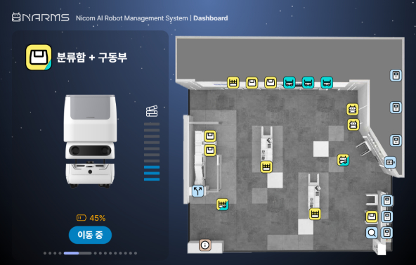 ÀÌ ½Ã½ºÅÛÀº Àüü ·Îº¿ÀÇ °¡µ¿ »óÅ ¹× À§Ä¡ µ¥ÀÌÅ͸¦ ½Ç½Ã°£ ½Ã°¢ÈÇϰí ÀÛ¾÷ ¹× °æ·Î¸¦ ¸ð´ÏÅ͸µÇÑ´Ù. ¸ÖƼ ·Îº¿ Á¦¾î ¾Ë°í¸®ÁòÀ» ÅëÇØ ±³Â÷·Î ÁøÀÔ ¿ì¼±¼øÀ§¸¦ ÆÇº°Çϰí À̵¿À» ÅëÁ¦ÇØ ±³Âø »óŸ¦ ¹æÁöÇÑ´Ù.