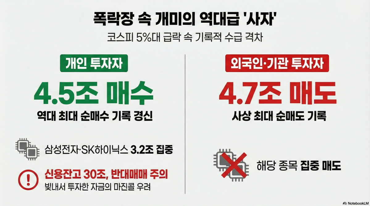 ÄÚ½ºÇÇ Áö¼ö°¡ 5%´ë ±Þ¶ôÇϸç ÀåÀ» ¸¶°¨ÇÑ °¡¿î °³¹Ì ÅõÀÚÀÚµéÀº 4.5Á¶ ¿ø´ë ¿ª´ë±Þ '»çÀÚ'¸¦ Çຸ¸¦ º¸¿´´Ù. ¿Ü±¹Àΰú ±â°üÀÌ Áö¼ö Ç϶ô¿¡ 4.7Á¶ ¿ø ³Ñ°Ô ÆÈ¸ç »ç»ó ÃÖ´ë ¼ø¸Åµµ·Î ±¹³» Áõ½Ã¸¦ Å»ÃâÇÏ´Â ¸ð½À°ú´Â ¹Ý´ëµÇ´Â ¸ð½ÀÀÌ´Ù.