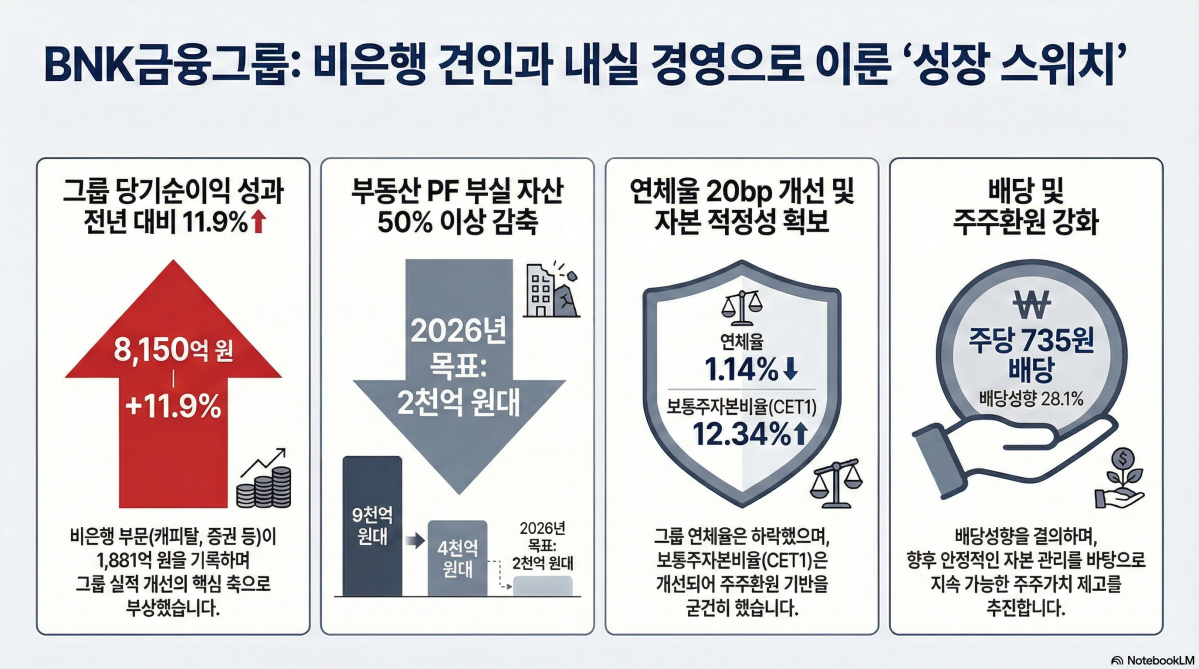 BNK±ÝÀ¶±×·ì ¼øÀÌÀÍÀÌ Áõ±Ç¡¤ÀÚ»ê¿î¿ëÀ» Áß½ÉÀ¸·Î 8000¾ï¿øÀ» ³Ñ¾î¼¹´Ù. ÀÚ»ê°ÇÀü¼º°ú ÀÚº»ÀûÁ¤¼º ÁöÇ¥µµ ÇÔ²² °³¼±µÇ¸ç ¹è´ç È®´ë ¿©·Âµµ Ä¿Á³´Ù.