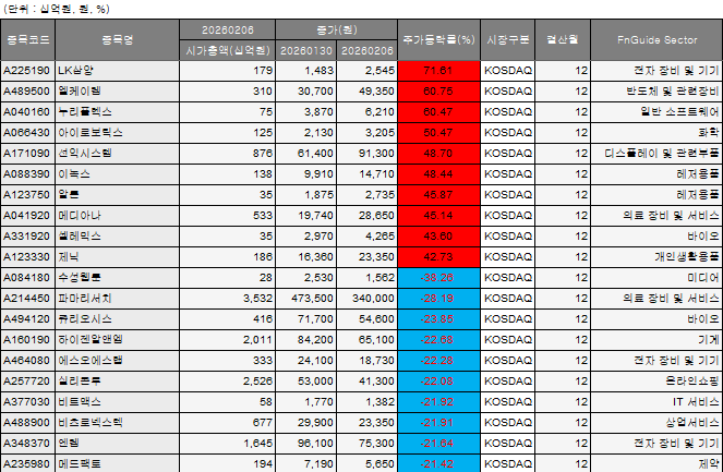 ÁÖ°£ »ó½Â·ü 1À§´Â LK»ï¾çÀÌ´Ù. LK»ï¾çÀº 1483¿ø¿¡¼ 2545¿øÀ¸·Î 71.61% ±ÞµîÇß´Ù. ÀüÀÚ Àåºñ ¹× ±â±â °ü·ÃÁÖ·Î ¸Å¼ö¼¼°¡ È®»êÇÑ °¡¿îµ¥ ¾÷Á¾ Àü¹ÝÀÇ ¼øÈ¯¸Å°¡ °ÇØÁö¸é¼ ÁÖ°¡°¡ ź·ÂÀ» ¹ÞÀº °ÍÀ¸·Î ÇØ¼®µÈ´Ù. ´Ü±â°£ °Å·¡´ë±ÝÀÌ ´Ã¸ç ¼ö±Þ ¿µÇâÀÌ Ä¿Áø Á¡µµ »ó½Â Æø È®´ë¿¡ ¿µÇâÀ» ÁØ °ÍÀ¸·Î Ç®À̵ȴÙ.