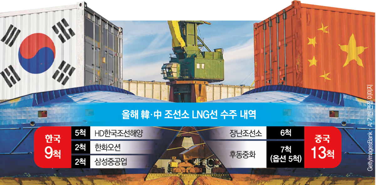 °°Àº ±â°£ ±¹³» Á¶¼± 3»ç(HDÇѱ¹Á¶¼±Çؾ硤ÇÑÈ¿À¼Ç¡¤»ï¼ºÁß°ø¾÷)ÀÇ LNG¼± ¼öÁÖ´Â 9ô¿¡ ±×ÃÆ´Ù. HDÇѱ¹Á¶¼±ÇؾçÀÌ 5ôÀ» ¼öÁÖÇß°í, ÇÑÈ¿À¼Ç°ú »ï¼ºÁß°ø¾÷ÀÌ °¢°¢ 2ôÀ» È®º¸Çß´Ù. ô¼ö¸¸ ³õ°í º¸¸é ÃÖ±Ù±îÁö´Â Áß±¹ÀÇ °ø¼¼°¡ µÎµå·¯Áø´Ù.