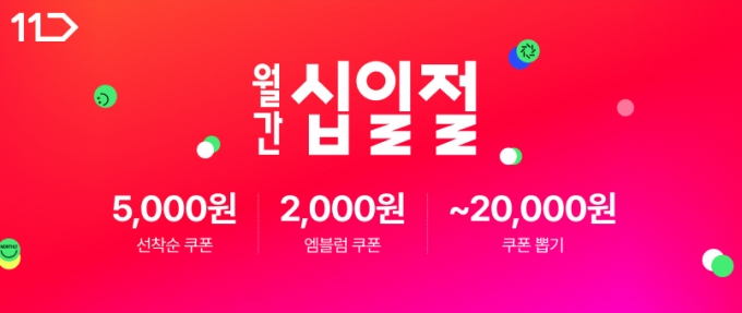11¹ø°¡´Â Çà»ç ±â°£ Àü °í°´À» ´ë»óÀ¸·Î 5000¿ø ÇÒÀÎ ÄíÆù(5¸¸¿ø ÀÌ»ó ±¸¸Å ½Ã)À» ¸ÅÀÏ ¿ÀÀü 9½Ã ¼±Âø¼ø ¹ß±ÞÇÑ´Ù. ½ÊÀÏÀý ¿¥ºí·³ÀÌ ºÎÂøµÈ »óǰ¿¡ Àû¿ëÇÒ ¼ö ÀÖ´Â 2000¿ø ÇÒÀÎ ÄíÆù(2¸¸¿ø ÀÌ»ó ±¸¸Å ½Ã)À» ¸ÅÀÏ ID´ç 1À徿 ¹ß±ÞÇÑ´Ù.