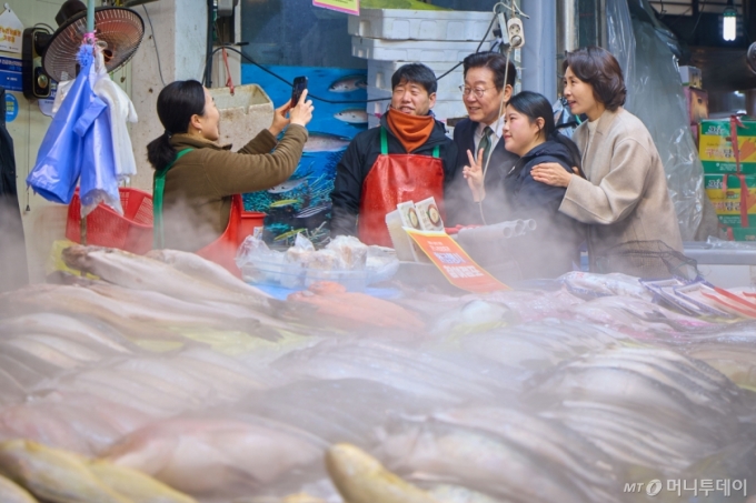 ÀÌ ´ëÅë·É°ú ±è ¿©»ç´Â ½ÃÀå ³» ¿©·¯ »óÁ¡À» µé·¯ "»õÇØ º¹ ¸¹ÀÌ ¹ÞÀ¸½Ã¶ó"¶ó´Â Àλ縦 °Ç³Þ°í »óÀΰú ½Ã¹ÎµéÀº ȯȣ¿Í ¹Ú¼ö·Î ÀÌ ´ëÅë·É ºÎºÎ¸¦ ¸Â¾Ò´Ù.