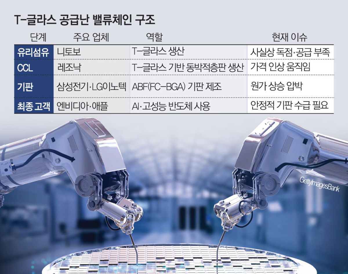 ¹ë·ùüÀεµ ´Ü¼øÇÏÁö ¾Ê´Ù. ´ÏÅ亸°¡ T-±Û¶ó½º¸¦ µ¿¹ÚÀûÃþÆÇ(CCL) ¾÷ü¿¡ °ø±ÞÇϸé CCL ¾÷ü°¡ À̸¦ Ȱ¿ëÇØ ¹ÝµµÃ¼ ±âÆÇ ¾÷ü¿¡ ³³Ç°ÇÏ´Â ±¸Á¶´Ù. CCL ÁÖ¿ä °ø±Þ¾÷üÀÎ ÀϺ» ·¹Á¶³«Àº ÃÖ±Ù T-±Û¶ó½º µî ¿øÀÚÀç °¡°Ý »ó½ÂÀ» ¹Ý¿µÇØ CCL °¡°ÝÀ» ¾à 30% ÀλóÇÑ °ÍÀ¸·Î ÀüÇØÁ³´Ù.
