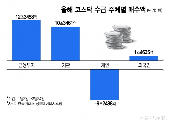25ÀÏ °Å·¡¼Ò¿¡ µû¸£¸é ¿Ãµé¾î Àü³¯±îÁö ÄÚ½º´Ú ½ÃÀå¿¡¼ ±ÝÀ¶ÅõÀÚ°¡ 12Á¶3458¾ï¿ø°¡·®À» ¼ø¸Å¼öÇß´Ù. ÀÌ´Â °³ÀÎÅõÀÚÀÚ¸¦ Áß½ÉÀ¸·Î ÇÑ ÄÚ½º´Ú Áö¼ö ETF(»óÀåÁö¼öÆÝµå) ¸Å¼ö¼¼·Î Ç®À̵ȴÙ. °³ÀÎÅõÀÚÀÚ°¡ ETF¸¦ »çµéÀ̸é Áõ±Ç»ç µî LP(À¯µ¿¼º°ø±ÞÀÚ)°¡ ÇØ´ç ETF ±¸¼º Á¾¸ñÀ» Çö¹° ½ÃÀå¿¡¼ ¸Å¼öÇÏ°Ô µÇ´Âµ¥ ÀÌ ¹°·®ÀÌ ±ÝÀ¶ÅõÀÚ ¼ö±ÞÀ¸·Î Áý°èµÇ±â ¶§¹®ÀÌ´Ù.