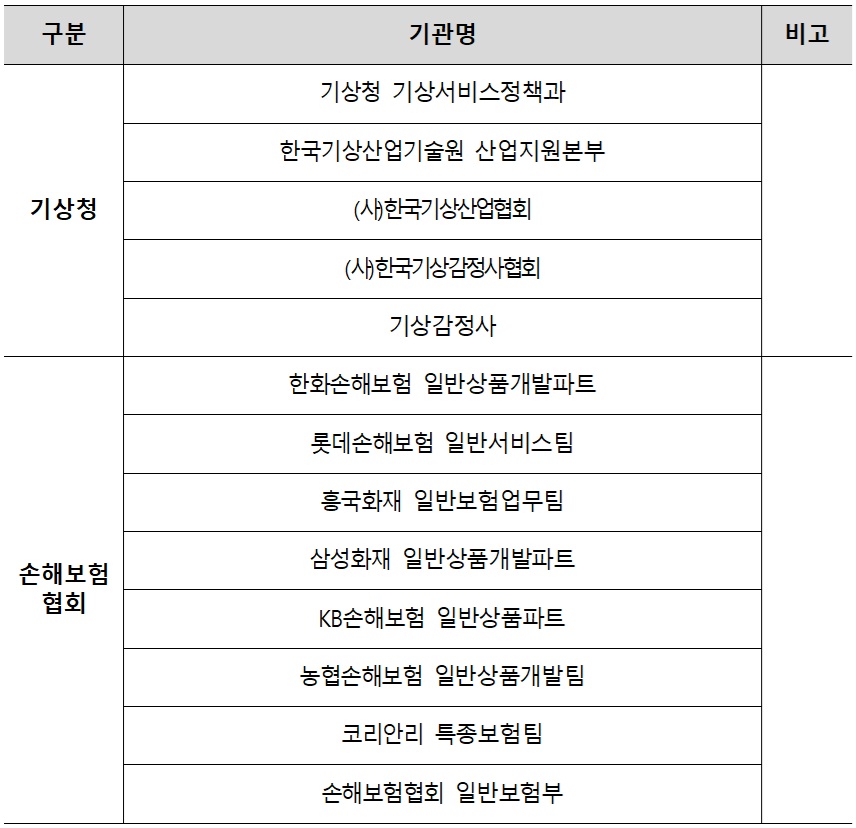 À̹ø ÇùÀÇü¿¡´Â ±â»óû°ú ¼ÕÇØº¸ÇèÇùȸ¸¦ ºñ·ÔÇØ ¡âÇѱ¹±â»ó»ê¾÷±â¼ú¿ø ¡â(»ç)Çѱ¹±â»ó»ê¾÷Çùȸ ¡â(»ç)Çѱ¹±â»ó°¨Á¤»çÇùȸ ¡âÇÑȼÕÇØº¸Çè ¡â·Ôµ¥¼ÕÇØº¸Çè ¡âÈï±¹ÈÀç ¡â»ï¼ºÈÀç ¡âÄÉÀ̺ñ(KB)¼ÕÇØº¸Çè ¡â³óÇù¼ÕÇØº¸Çè ¡âÄÚ¸®¾È¸® µî ¿©·¯ °ü°è±â°ü°ú º¸Çè»ç°¡ Âü¿©ÇÑ´Ù.