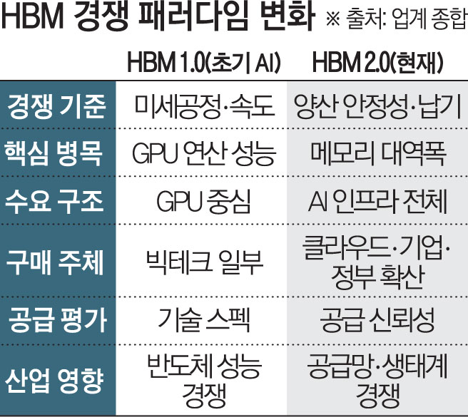¿£ºñµð¾ÆÀÇ È£½ÇÀûÀ» °è±â·Î ÀΰøÁö´É(AI) ÅõÀÚ È®´ë°¡ ÀçÈ®ÀÎµÇ¸é¼ °í´ë¿ªÆø¸Þ¸ð¸®(HBM)¸¦ µÑ·¯½Ñ °æÀï ±¸µµ°¡ »õ·Î¿î ±¹¸é¿¡ µé¾î¼¹´Ù. Ãʱâ HBM °æÀïÀÌ ¹Ì¼¼ °øÁ¤°ú ¼º´É Áß½ÉÀ̾ú´Ù¸é ÀÌÁ¦´Â ¾ç»ê ¾ÈÁ¤¼º°ú °ø±Þ ´É·ÂÀÌ ½ÂºÎ¸¦ °¡¸£´Â ÇÙ½É º¯¼ö·Î ¶°¿Ã¶ú´Ù´Â Æò°¡´Ù.