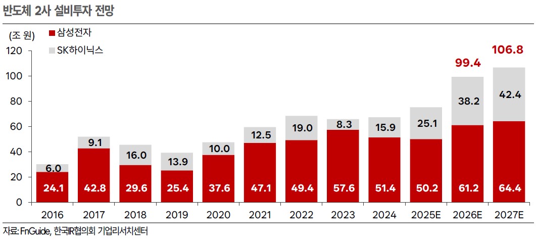 ÀÌ¿øÀç Çѱ¹IRÇùÀÇȸ ¿¬±¸À§¿øÀº ¡°±¹³» ¹ÝµµÃ¼ ±â¾÷ 2»çÀÎ »ï¼ºÀüÀÚ¿Í SKÇÏÀ̴нºÀÇ ¼³ºñÅõÀÚ ÄÁ¼¾¼½º¸¦ º¸¸é 2026³â¿¡´Â 99.4Á¶¿øÀ¸·Î Àü³â ´ëºñ 32.0% ±ÞÁõÇÏ¸ç ¿ª´ë ÃÖ´ëÄ¡¸¦ °»½ÅÇÒ Àü¸Á¡±À̶ó¸ç ¡°¹ÝµµÃ¼ »ê¾÷Àº ¹Ì¼¼È °øÁ¤ÀÇ ÇѰè·Î µ¿ÀÏ »ý»ê´É·ÂÀ» È®º¸Çϱâ À§ÇØ ´õ ¸¹Àº Àåºñ¿Í °ø°£ÀÌ ÇÊ¿äÇØÁö´Â ±¸Á¶Àû º¯È¸¦ ¸ÂÀÌÇϰí ÀÖ´Ù¡±°í Áø´ÜÇß´Ù.