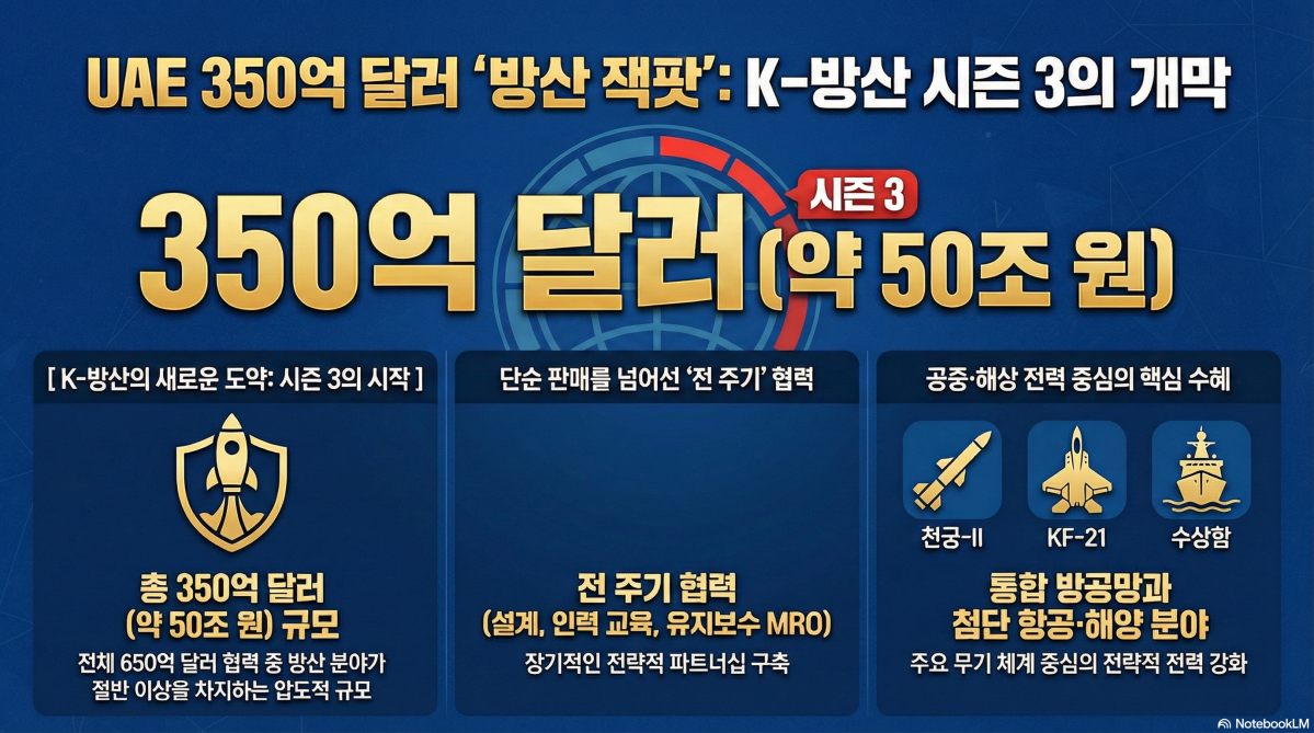 Çѱ¹°ú ¾Æ¶ø¿¡¹Ì¸®Æ®(UAE)°¡ 350¾ï ´Þ·¯ ±Ô¸ðÀÇ ¹æ»êÇù·Â ¾çÇØ°¢¼(MOU)¸¦ ü°áÇϸç 'K-¹æ»ê ½ÃÁð 3'ÀÇ ¼¸·À» ¿¾ú´Ù. À̹ø ÇÕÀÇ´Â ´Ü¼øÇÑ ¹«±â ÆÇ¸Å¸¦ ³Ñ¾î ¼³°è¿Í À¯Áöº¸¼ö¸¦ ¾Æ¿ì¸£´Â Àü ÁÖ±âÀû Çù·Â ¸ðµ¨À» ±¸ÃàÇß´Ù´Â Á¡¿¡¼ ÀÇÀǰ¡ Å©´Ù.