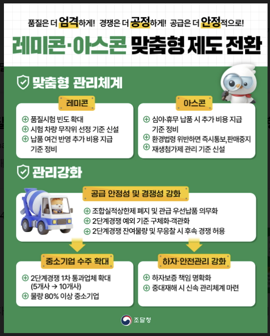 ¹é½Âº¸ Á¶´ÞûÀåÀº "À̹ø ±ÔÁ¤ °³Á¤Àº 5Á¶¿ø ±Ô¸ðÀÇ ÁÖ¿ä °ü±ÞÀÚÀçÀÎ ·¹¹ÌÄÜ¡¤¾Æ½ºÄÜ¿¡ ´ëÇØ ¹°Ç° Ư¼ºÀ» ¹Ý¿µÇÑ ÇÕ¸®ÀûÀÎ Á¦µµ¿î¿µ ±â¹ÝÀ» ¸¶·ÃÇÑ °Í"À̶ó¸ç "ǰÁúÀº ´õ¿í ¾ö°ÝÇÏ°Ô °ü¸®ÇÏ°í °æÀïÀº °øÁ¤ÇÏ°Ô ¿î¿µÇϸç, °ø±ÞÀº ¾ÈÁ¤ÀûÀ¸·Î À¯ÁöÇÏ´Â °ü±ÞÀÚÀç °ü¸® ü°è¸¦ È®¸³ÇØ ³ª°¡°Ú´Ù"°í ¹àÇû´Ù.