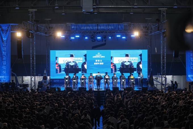¼øÃµÇâ´ëÇб³°¡ 3ÀÏ ±³³» üÀ°°ü¿¡¼ '2026Çг⵵ ½ÅÀÔ»ý ÀÔÇнÄ'À» ¿°í ½ÅÀÔ»ý 2800¿©¸íÀÇ ÈûÂù Ãâ¹ßÀ» ÃàÇÏÇß´Ù.