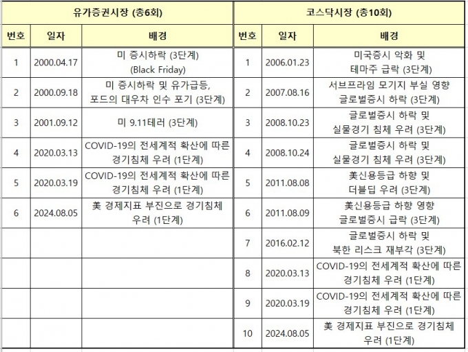 ÄÚ½ºÇǽÃÀ庻ºÎ´Â 4ÀÏ ¿ÀÀü 11½Ã19ºÐ 13ÃʺÎÅÍ 20ºÐ°£ ¸Å¸Å°Å·¡¸¦ ÁߴܽÃÄ×´Ù. ÄÚ½º´Ú½ÃÀ庻ºÎ´Â 11½Ã16ºÐ33ÃʺÎÅÍ 20ºÐ°£ ¸Å¸Å°Å·¡¸¦ ÁߴܽÃÄ×´Ù. ÄÚ½ºÇÇ¿Í ÄÚ½º´Ú¿¡¼ ÀüÀÏ Á¾°¡´ëºñ ÁÖ°¡°¡ 8% ÀÌ»ó Ç϶ôÇÑ »óŰ¡ 1ºÐ°£ Áö¼ÓµÇ¸é¼ ÇØ´ç Á¶Ä¡°¡ ¹ßµ¿µÆ´Ù.