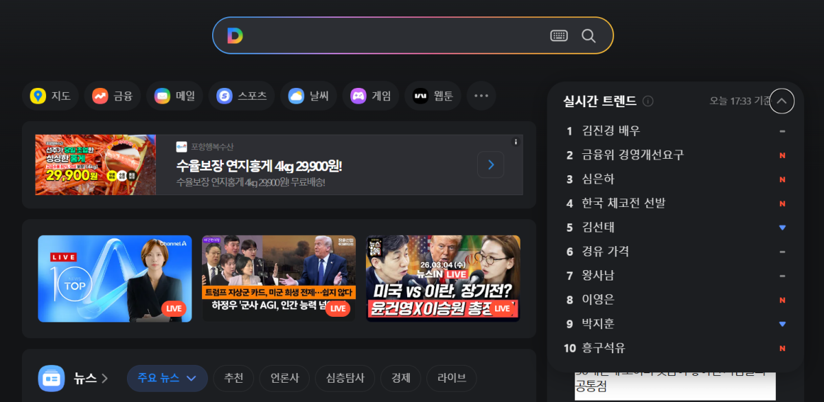 4ÀÏ ´ÙÀ½À» ¿î¿µÇϴ īī¿À ÀÚȸ»ç ¿¡ÀÌ¿¢½ºÁö(AXZ)¿¡ µû¸£¸é ´ÙÀ½Àº Àü³¯ºÎÅÍ ½Ç½Ã°£ Àα⠰˻ö¾î ¼ºñ½ºÀÎ '½Ç½Ã°£ Æ®·»µå'ÀÇ º£Å¸ ¼ºñ½º¸¦ °³½ÃÇß´Ù. ´ÙÀ½ÀÇ ½Ç°Ë ¼ºñ½º¸¦ Àç°³´Â 2020³â 2¿ù Á¾·á ÀÌÈÄ 6³â ¸¸ÀÌ´Ù. AXZ´Â "ºü¸£°Ô º¯ÇÏ´Â À̽´¸¦ ´õ ºü¸£°í Á¤È®ÇÏ°Ô Àü´ÞÇϱâ À§ÇØ ÀÌ ¼ºñ½º¸¦ ¿ÀÇÂÇÑ´Ù"°í ¼³¸íÇß´Ù.