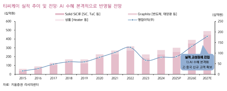 ¹ÚÀ¯¾Ç Ű¿òÁõ±Ç ¿¬±¸¿øÀº "Ƽ¾¾ÄÉÀÌÀÇ 2026³â ½ÇÀû Àü¸ÁÄ¡¸¦ ¸ÅÃâ¾× 3916¾ï¿ø°ú ¿µ¾÷ÀÌÀÍ 1320¾ï¿øÀ¸·Î »óÇâ Á¶Á¤ÇÑ´Ù"¸ç "AI¿ë eSSD ¼ö¿ä È®´ë·Î ÀÎÇØ °í°´µéÀÇ ½Å±Ô NAND Á¦Ç°(9¼¼´ë NAND)ÀÇ ¾ç»êÀÌ º»°Ýȵǰí ÀÖ´Ù. Ƽ¾¾ÄÉÀÌÀÇ SiC Æ÷Ä¿½º¸µÀº 9¼¼´ë NAND¿¡¼ ´ÜÀ§´ç »ç¿ë·®ÀÌ Å©°Ô Áõ°¡Çϰí, AI¿ë eSSD ¼ö¿ä È®´ëÀÇ Å« ¼öÇý¸¦ º¼ Àü¸Á"À̶ó°í ¼³¸íÇß´Ù.