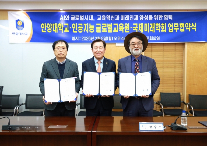 ¾È¾ç´ëÇб³°¡ Áö³ 9ÀÏ ±³³» ÀÏ¿ìÁß¾Óµµ¼°ü¿¡¼ ÀΰøÁö´É ±Û·Î¹ú±³À°¿ø, ±¹Á¦¹Ì·¡ÇÐȸ¿Í AI ¹Ì·¡ ÀÎÀç ¾ç¼º ¹× AI ¿ª·® °È¸¦ À§ÇÑ ¾÷¹«Çù¾à(MOU)À» ü°áÇß´Ù°í 10ÀÏ ¹àÇû´Ù.