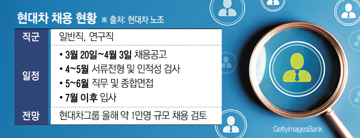 Çö´ëÀÚµ¿Â÷°¡ ÀϹÝÁ÷°ú ¿¬±¸Á÷À» ´ë»óÀ¸·Î ½Å±Ô ä¿ë¿¡ ³ª¼±´Ù. Àüµ¿È¿Í ¼ÒÇÁÆ®¿þ¾î Á᫐ Â÷·®(SDV) Àüȯ °¡¼Óȸ¦ À§ÇÑ ¹Ì·¡ ÀÎÀ縦 È®º¸Çϱâ À§ÇÑ ¸ñÀûÀÌ´Ù. Çö´ëÂ÷±×·ìÀÌ ±¹°¡ °æÁ¦ Ȱ¼ºÈ¿Í û³â ÀÏÀÚ¸® âÃâÀ» À§ÇØ ¿ÃÇØ ¾à 1¸¸ ¸í ±Ô¸ðÀÇ Ã¤¿ëÀ» °ËÅäÇϰí ÀÖ´Â ¸¸Å Ãß°¡ ä¿ë °ø°íµµ À̾îÁú °ÍÀ¸·Î °üÃøµÈ´Ù.