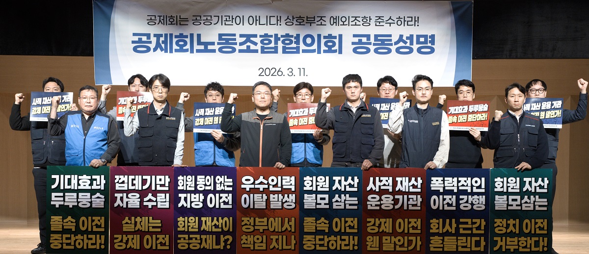 Çѱ¹±³Á÷¿ø°øÁ¦È¸, ´ëÇÑÁö¹æÇàÁ¤°øÁ¦È¸, ±ºÀΰøÁ¦È¸, °æÂû°øÁ¦È¸ µî ÁÖ¿ä °øÁ¦È¸ ³ëµ¿Á¶ÇÕÀ¸·Î ±¸¼ºµÈ ¡®°øÁ¦È¸³ëµ¿Á¶ÇÕÇùÀÇȸ¡¯´Â 11ÀÏ °øµ¿¼º¸íÀ» ³»°í ¡°°øÁ¦È¸´Â ±¹°¡ ÀçÁ¤ÀÌ ¾Æ´Ï¶ó ȸ¿øµéÀÇ ÀÚ¹ßÀû ±â¿©±ÝÀ¸·Î ¿î¿µµÇ´Â ¹Î°£ ¼º°ÝÀÇ ÀÚÁ¶±â±¸¡±¶ó¸ç ¡°À̸¦ ÀÏ¹Ý °ø°ø±â°ü°ú µ¿Àϼ±»ó¿¡ ³õ°í Áö¹æ ÀÌÀüÀ» °ÇàÇÏ´Â °ÍÀº ±â°üÀÇ Æ¯¼ö¼ºÀ» ¿Ü¸éÇÑ Å¹»óÇàÁ¤¡±À̶ó°í ¹àÇû´Ù.