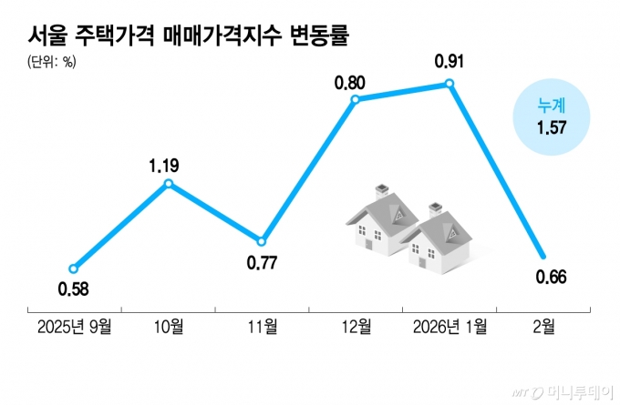 Á¤ºÎÀÇ °í°µµ ±ÔÁ¦ °È È帧ÀÌ À̾îÁö¸é¼ Áý°ª »ó½Â¼¼¿¡ ±ÞÁ¦µ¿ÀÌ °É·È´Ù´Â ºÐ¼®ÀÌ ³ª¿Â´Ù. 2¿ù »ó½Â·üÀº Áö³ÇØ 10¿ù »ó½Â·ü°ú ºñ±³Çϸé Àý¹Ý ¼öÁØ¿¡ ºÒ°úÇÏ´Ù.