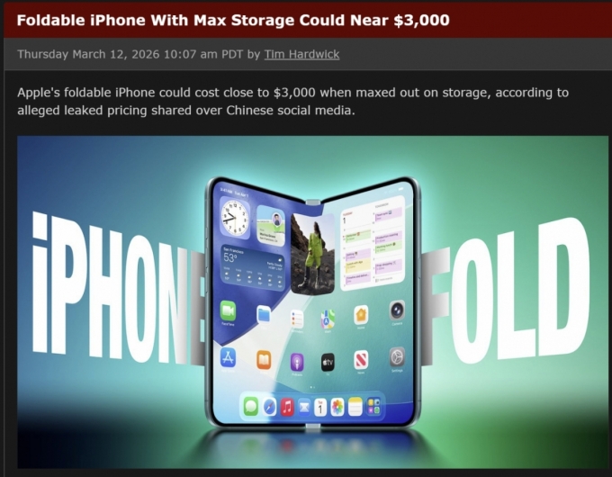 17ÀÏ IT Àü¹® ¿Ü½Å ¸Æ·ç¸Ó½º(MacRumors)¿¡ µû¸£¸é Æú´õºí ¾ÆÀÌÆùÀÇ ÀúÀå¿ë·® ¿É¼Ç°ú °¡°Ý Á¤º¸°¡ SNS(¼Ò¼È¹Ìµð¾î)¸¦ ÅëÇØ À¯ÃâµÆ´Ù. ÇØ´ç ¸Åü´Â ¿þÀ̺¸¿¡¼ Ȱµ¿ÇÏ´Â ÀÎÇ÷ç¾ð¼(Instant Digital) °èÁ¤À» Àοë, ¾ÆÀÌÆùÆúµåÀÇ °¡°ÝÀÌ ÃÖ´ë 3000´Þ·¯¿¡ À°¹ÚÇÒ °ÍÀ̶ó°í º¸µµÇß´Ù. ±¸Ã¼ÀûÀ¸·Î 256GB ¸ðµ¨Àº ¾à 346¸¸¿ø(2320´Þ·¯), 512GB¸ðµ¨ÀÌ ¾à390¸¸¿ø, 1TB¸ðµ¨ÀÌ ¾à 433¸¸¿ø ¼öÁØÀÌ µÉ°ÍÀ̶ó°í ¿¹»óÇß´Ù.