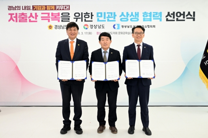 À̳¯ ¼±¾ð½ÄÀº Àα¸ Àýº®À̶ó´Â ±¹°¡Àû À§±â »óȲÀ» °øµ¿ ÀνÄÇϰí '¾ÆÀÌ Å°¿ì±â ÁÁÀº °æ³²'À» ½ÇÇöÇϱâ À§ÇÑ Çù·Â ±â¹ÝÀ» ¸¶·ÃÇϱâ À§ÇÑ °ÍÀ¸·Î Áø»ó¶ô ƯÀ§ À§¿øÀå°ú ÀÌÀçµÎ, ¹ÚÁøÇö ƯÀ§ À§¿ø, ±è¸íÁÖ °æ³²µµ °æÁ¦ºÎÁö»ç, ÃÖÀçÈ£ °æ³²»ó°øÈ¸ÀǼÒÇùÀÇȸ ȸÀå µîÀÌ Âü¼®Çß´Ù.