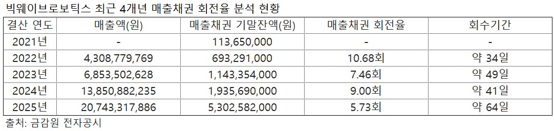 ÀÌ¿¡ µû¶ó ÀÚ»ê È¿À²¼ºÀ» ³ªÅ¸³»´Â ÁöÇ¥ÀÎ ¸ÅÃâä±Ç ȸÀüÀ²Àº 2024³â 9.00ȸ¿¡¼ 2025³â 5.73ȸ·Î Å©°Ô Ç϶ôÇß´Ù. ¿Ü»ó°ªÀ» Çö±ÝÈÇÏ´Â ¼Óµµ°¡ µÐÈÇÏ¸é¼ ¸ÅÃâä±Ç ȸ¼ö±â°£ ¿ª½Ã 2024³â ¾à 41ÀÏ¿¡¼ Áö³ÇØ ¾à 64ÀÏ·Î 23Àϰ¡·® ´Ã¾î³µ´Ù. ±â¾÷ÀÌ ´ë±ÝÀ» ¼Õ¿¡ Áã±â±îÁö °É¸®´Â ½Ã°£ÀÌ µÎ ´ÞÀ» ³Ñ±â±â ½ÃÀÛÇÏ¸ç ¿îÀüÀÚº» ºÎ´ãÀÌ °¡Áߵǰí ÀÖ´Â Çü±¹ÀÌ´Ù.