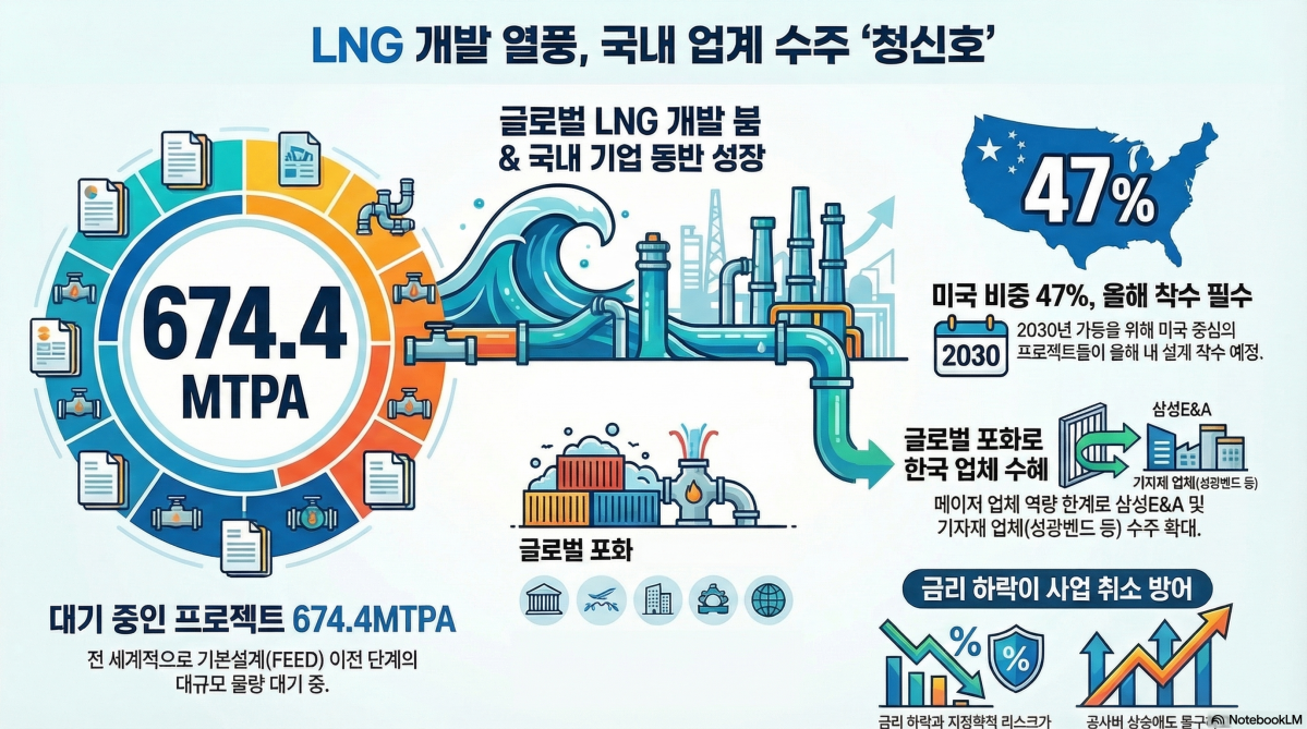 Çö´ëÂ÷Áõ±ÇÀº º¸°í¼¸¦ ÅëÇØ ƯÈ÷ ¹Ì±¹À» Áß½ÉÀ¸·Î ÇÑ LNG °³¹ß È®´ë°¡ ´«¿¡ ¶è´Ù°í ¹àÇû´Ù. 2025³â ¿ª´ë±Þ ±Ô¸ðÀÇ ÃÖÁ¾ÅõÀÚ°áÁ¤(FID)ÀÌ ÀÌ·ïÁ³À½¿¡µµ ºÒ±¸ÇÏ°í ¿©ÀüÈ÷ Ãß°¡ÀûÀÎ °³¹ß ºÕÀÌ ±â´ëµÇ´Â »óȲÀÌ´Ù. º¸°í¼´Â 2026³â 2¿ù ±âÁØÀ¸·Î Àü ¼¼°èÀûÀ¸·Î ¾à 674.4MTPA ±Ô¸ðÀÇ LNG ÇÁ·ÎÁ§Æ®°¡ ¾ÆÁ÷ ±âº»¼³°è(FEED) ¶Ç´Â ±× Àü ´Ü°è¿¡ ¸Ó¹°°í ÀÖ´Ù°í ºÐ¼®Çß´Ù. 1MTPA´Â ¿¬°£ 100¸¸ Åæ »ý»ê¡¤¼ö¼Û ´É·ÂÀ» ¶æÇÑ´Ù.
