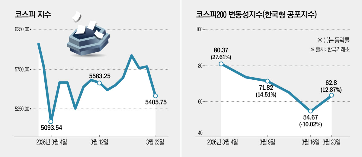 23ÀÏ Çѱ¹°Å·¡¼Ò¿¡ µû¸£¸é ÄÚ½ºÇÇ´Â ÀüÀ庸´Ù 375.45Æ÷ÀÎÆ®(6.49%) Ç϶ôÇÑ 5405.75¿¡ °Å·¡¸¦ ¸¶Ä¡¸ç '°ËÀº ¿ù¿äÀÏ'À» ¸Â¾Ò´Ù. Áö³ÁÖ ÀüÀï ÁøÇà »óȲ¿¡ µû¶ó 1°Å·¡ÀÏ ¸¸¿¡ 280(3¿ù18ÀÏ) ³Ñ°Ô ¿Ã¶ú´Ù 160(3¿ù19ÀÏ) ³Ñ°Ô ºüÁö´Â µî ±Ø½ÉÇÑ º¯µ¿¼º Àå¼¼¸¦ º¸À̰í ÀÖ´Ù.