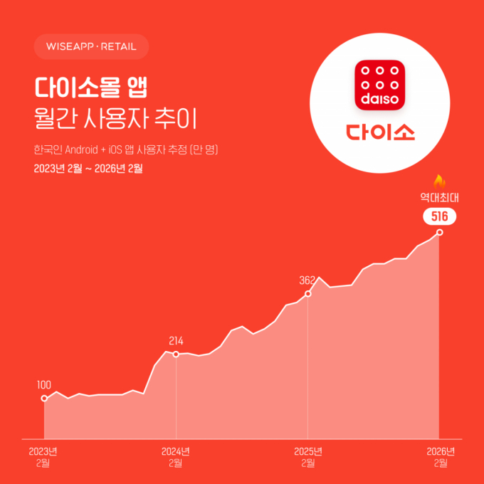 24ÀÏ ¾Û ºÐ¼® ¼ºñ½º ¿ÍÀÌÁî¾Û¸®Å×ÀÏ¿¡ µû¸£¸é ¿ÃÇØ 2¿ù ´ÙÀ̼Ҹô ¾Û ¿ù°£ Ȱ¼º »ç¿ëÀÚ ¼ö(MAU)´Â 516¸¸¸íÀ¸·Î Áý°èµÆ´Ù. ÀÌ´Â 362¸¸¸íÀ̾ú´ø Àü³â µ¿¿ù ´ëºñ 42% Áõ°¡ÇÑ °ÍÀÌ¸ç ¾Û Ãâ½Ã ÀÌÈÄ ÃÖ´ëÄ¡´Ù.