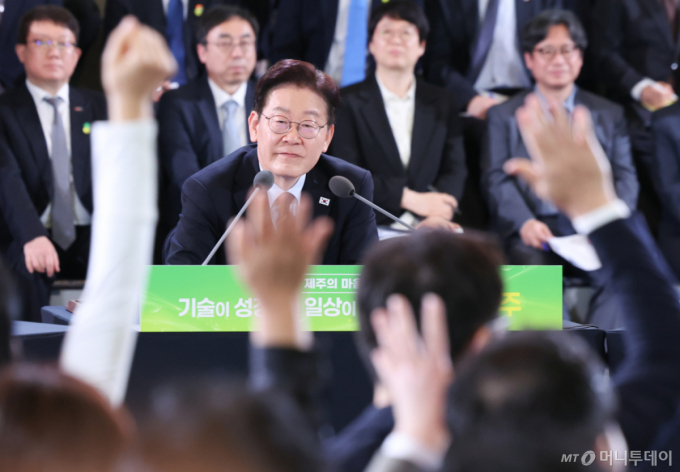 ÀÌÀç¸í ´ëÅë·ÉÀÌ Á¦ÁÖµµ¸¦ ¹æ¹®ÇØ Àç»ý¿¡³ÊÁö Àüȯ¿¡ ¼Óµµ¸¦ ³» ÁÙ °ÍÀ» ÁÖ¹®Çß´Ù. ¶Ç ±â¾÷µéÀÌ º»»ç ÁÖ¼ÒÁö¸¸ Áö¹æÀ¸·Î ¿Å°Ü¼´Â ¼¼Á¦ ÇýÅÃÀ» ¹ÞÁö ¸øÇϵµ·Ï Á¤Ã¥À» Àç¼³°èÇØ¾ß ÇÑ´Ù°í °Á¶Çß´Ù.