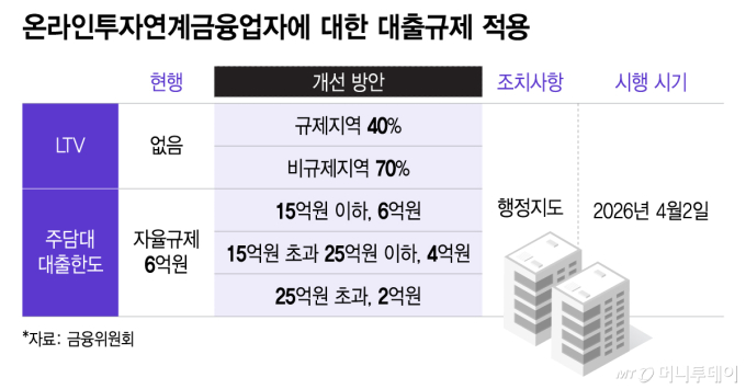 ¿Â¶óÀÎÅõÀÚ¿¬°è±ÝÀ¶(¿ÂÅõ)¿¡µµ ÁÖÅô㺸´ëÃâ LTV(´ãº¸ÀÎÁ¤ºñÀ²) ±ÔÁ¦¸¦ Àû¿ëŰ·Î ÇÏÀÚ ¾÷°è°¡ ÆÐ´Ð¿¡ ºüÁ³´Ù. ºÎµ¿»ê´ãº¸ ´ëÃâ ºñÁßÀÌ 30%¿¡ ´ÞÇÏ´Â ¿ÂÅõ¾÷°è¿¡¼± "ÀÌ·¯´Ù°£ °í»çÇÑ´Ù"´Â ¹ÝÀÀÀÌ ³ª¿Â´Ù.