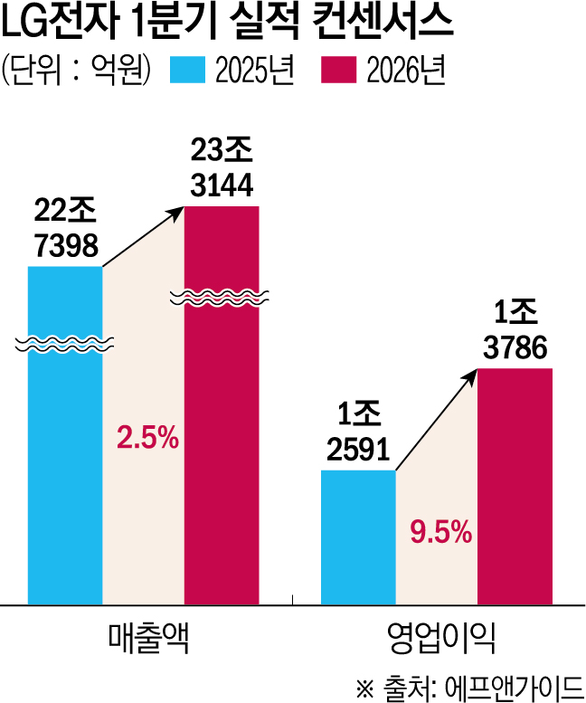 LGÀüÀÚ°¡ ´ÙÀ½ ÁÖ ÀáÁ¤ ½ÇÀû ¹ßÇ¥¸¦ ¾ÕµÐ °¡¿îµ¥ 1ºÐ±â ±âÁØ ÃÖ´ë ¸ÅÃâÀ» ±â·ÏÇÒ °ÍÀ¸·Î Àü¸ÁµÈ´Ù. °¡Àü ±¸µ¶ »ç¾÷°ú ³Ã³¹æ°øÁ¶(HVAC) µî ±â¾÷ °£ °Å·¡(B2B) »ç¾÷ È®´ë È¿°ú°¡ º»°Ý ¹Ý¿µµÇ¸é¼ ½ÇÀû üÁú °³¼± È帧ÀÌ À̾îÁö°í ÀÖ´Ù´Â Æò°¡´Ù.