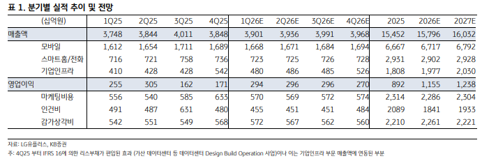 KBÁõ±Ç "LGÀ¯Ç÷¯½º, 1ºÐ±â ½ÇÀû °³¼± ¶Ñ·Ç¡¦AI µ¥ÀÌÅͼ¾Å͵µ ¼ºÀå µ¿·Â"