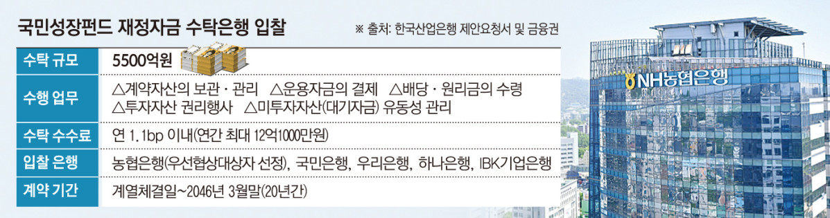 2ÀÏ º»Áö ÃëÀ縦 Á¾ÇÕÇϸé Çѱ¹»ê¾÷ÀºÇàÀÌ ÁøÇàÇÑ ¡®±¹¹Î¼ºÀåÆÝµå ÀçÁ¤°ü¸® ¼öŹÀºÇ࡯ ÀÔÂû¿¡¼ NH³óÇùÀºÇàÀÌ ÃÖ±Ù ¿ì¼±Çù»ó´ë»óÀÚ·Î ¼±Á¤µÆ´Ù. ÇöÀç ÃÖÁ¾ Çù»ó ÁøÇà ÁßÀÌ¸ç ³óÇùÀºÇàÀº °è¾à ü°á ÀÌÈÄ ÀÌ´Þ ¸»ºÎÅÍ ¾÷¹«¸¦ °³½ÃÇÒ Àü¸ÁÀÌ´Ù.