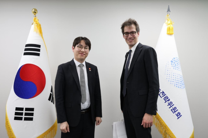 ÇÏÁ¤¿ì û¿Í´ë AI(ÀΰøÁö´É)¹Ì·¡±âȹ¼ö¼®ÀÌ 3ÀÏ ÇÁ¶û½ºÀÇ AI Çõ½Å ±â¼úÀ» ´ëÇ¥ÇÏ´Â ¹Ì½ºÆ®¶ö AIÀÇ ¾Æ¸£Æ¢¸£ ¸à½¬(Arthur Mensch) ȸÀå °â CEO(ÃÖ°í°æ¿µÀÚ)¿Í Àü°Ý ȸµ¿Çß´Ù.