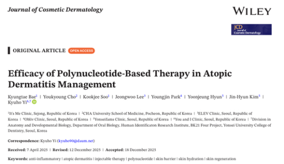 ±¹³» ÀÇ·áÁøÀÌ ¼öÇàÇÑ ¿¬±¸ 'Efficacy of Polynucleotide-Based Therapy in Atopic Dermatitis Management'´Â 2026³â 1¿ù ÇÇºÎ¹Ì¿ë ¹× Àç»ýÀÇÇÐ ºÐ¾ßÀÇ ±¹Á¦ Àú³ÎÀÎ Journal of Cosmetic Dermatology¿¡ °ÔÀçµÆ´Ù.