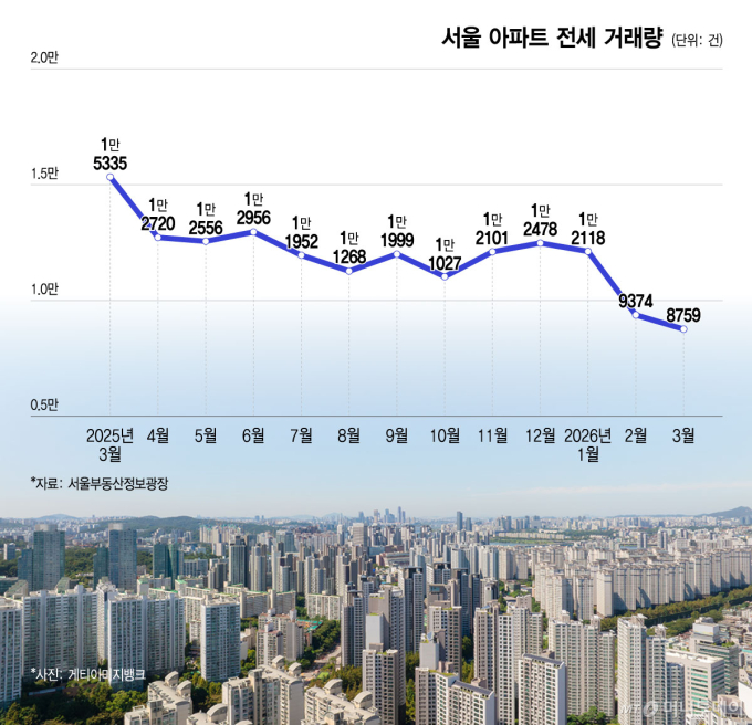 6ÀÏ ¼¿ïºÎµ¿»êÁ¤º¸±¤Àå¿¡ µû¸£¸é Áö³ 3¿ù ¼¿ï ¾ÆÆÄÆ® Àü¼¼ °Å·¡·®Àº 8759°ÇÀ¸·Î Áý°èµÆ´Ù. ÀÌ´Â 2019³â 4¿ù(8920°Ç) ÀÌÈÄ ¾à 7³â ¸¸¿¡ °¡Àå ÀûÀº ¼öÁØÀÌ´Ù. ½ÅÃà ¾ÆÆÄÆ® °ø±Þ °¨¼Ò¿Í ½Ç°ÅÁÖ Àǹ« °È, ´ÙÁÖÅÃÀÚ ±ÔÁ¦ µîÀ¸·Î Àü¼¼ ¹°°Ç ÀÚü°¡ ÁÙ¾îµç ¿µÇâÀ¸·Î Ç®À̵ȴÙ.