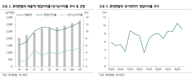 ¾È ¿¬±¸¿øÀº "·Ôµ¥·»Å»ÀÇ ¸Å°¢ °ü·Ã ºÒÈ®½Ç¼ºÀº Á¸ÀçÇϳª, ȸ»çÀÇ °æÀï·Â°ú ¼ºÀ强Àº ¿©ÀüÈ÷ À¯È¿ÇÏ´Ù"°í ¤¾ú´Ù. ±×´Â "Áß°íÂ÷ ·»ÅÍÄ«¿Í B2C ¸Å°¢(TÄ«) µî ½Å»ç¾÷µµ Àß ÀÚ¸®Àâ°í ÀÖ°í, º»¾÷ÀÎ Àå±â·»ÅÍÄ«´Â °æ±â ¹æ¾îÀû ¼º°ÝÀÌ °Çϱ⠶§¹®¿¡ 2026³âµµ °¡ÀÌ´ø½ºµµ ÃæºÐÈ÷ ´Þ¼º °¡´ÉÇÒ °ÍÀ¸·Î ÆÇ´ÜÇÑ´Ù"°í ¸»Çß´Ù. ·Ôµ¥·»Å»Àº 2026³â °¡ÀÌ´ø½º·Î ¸ÅÃâ¾× 3Á¶950¾ï¿ø, ¿µ¾÷ÀÌÀÍ 3620¾ï¿ø, ´ç±â¼øÀÌÀÍ 1400¾ï¿øÀ» Á¦½ÃÇß´Ù.