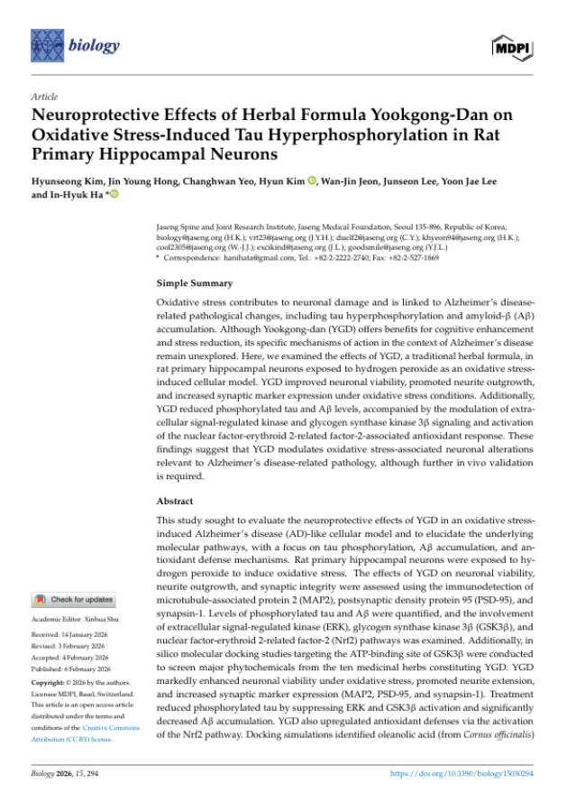 ±èÇö¼º ÀÚ»ýÇѹ溴¿ø ôÃß°üÀý¿¬±¸¼Ò ¹Ú»ç ¿¬±¸ÆÀÀº À°°ø´ÜÀÇ ÇØ¸¶ ½Å°æ¼¼Æ÷ º¸È£ È¿°ú ¹× ÀÛ¿ë ±âÀüÀ» ±Ô¸íÇÑ ¿¬±¸ °á°ú¸¦ SCI(E)±Þ ±¹Á¦ÇмúÁö ¡®»ý¹°ÇÐ(Biology)¡¯¿¡ °ÔÀçÇß´Ù°í 8ÀÏ ¹àÇû´Ù.