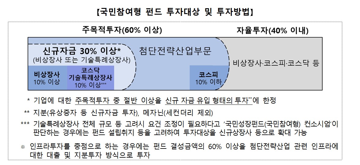±ÝÀ¶À§¿øÈ¸°¡ ´ÙÀ½ ´Þ Ãâ½Ã¸¦ ¸ñÇ¥·Î ¡®±¹¹ÎÂü¿©Çü ±¹¹Î¼ºÀåÆÝµå¡¯ÀÇ ÀÚÆÝµå ¿î¿ë ±âÁØÀ» È®Á¤Çß´Ù. ÷´ÜÀü·«»ê¾÷¿¡ ÀÚ±ÝÀÇ 60% ÀÌ»óÀ» ÅõÀÚÇϵµ·Ï ¼³°èÇØ ¼ºÀå»ê¾÷ À°¼º°ú ¼öÀͼº È®º¸¸¦ µ¿½Ã¿¡ ³ë¸°´Ù.