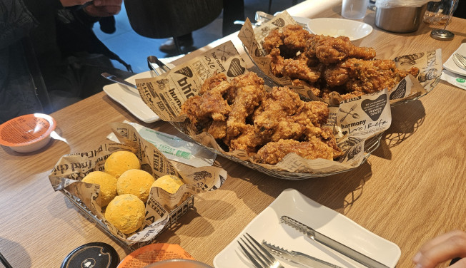 ƯÈ÷ µÎ ¸Þ´º ¸ðµÎ Çà»ç ÁøÇàÀ¸·Î Á¶¸®ÇÑÁö ½Ã°£ÀÌ ²Ï Áö³ ÈÄ ¸ÀÀ» ºÃÀ½¿¡µµ ¹Ù»èÇÔÀÌ »ì¾ÆÀÖ¾ú´Ù. ÀÌ´Â ¼Ò½º·Î ´ª´ªÇØÁú ¼ö Àִ ġŲÀÇ ´ÜÁ¡À» º¸¿ÏÇϱâ À§ÇØ bhc°¡ ÀÚü °³¹ßÇÑ ½îÀ̰¥¸¯Å· Àü¿ë Æ¢±è¿ÊÀÎ ¡®¹èÅ͹ͽº¡¯ È¿°ú´Ù. ÇØ´ç Æ¢±è¿Ê¿¡´Â ¸¶´Ã°ú ±ú µî ¹Ù»èÇÔÀ» ³ôÀÌ´Â ¼ÒÀçµéÀÌ Ã·°¡µÅ ½Ä°¨Àº ¹°·Ð ½ÄÀ»¼ö·Ï °í¼ÒÇÑ ¸ÀÀ» ´õÇØÁÖ´Â È¿°ú±îÁö Àâ¾Ò´Ù.