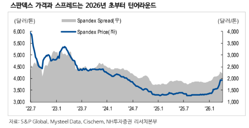 ·ù½Â¿ø NHÅõÀÚÁõ±Ç ¿¬±¸¿øÀº "¸ñÇ¥ÁÖ°¡ »óÇâÀº °¡ÆÄ¸¥ ½ºÆÇµ¦½º °¡°Ý°ú ½ºÇÁ·¹µå »ó½Â¼¼¸¦ ¹Ý¿µÇØ 2026³â ¿µ¾÷ÀÌÀÍ Àü¸ÁÄ¡¸¦ ±âÁ¸ ´ëºñ 14.1% »óÇâÇÑ µ¥ ±âÀÎÇÑ´Ù"¸ç "´ëºÎºÐÀÇ Á¤À¯ ¹× ÈÇÐ Á¦Ç° °¡°ÝÀÌ 3¿ù À¯°¡ ±Þµî ¿©ÆÄ·Î »ó½ÂÇÑ °Í°ú ´Þ¸®, ½ºÆÇµ¦½º °¡°ÝÀº ¿¬ÃʺÎÅÍ ¼ö±Þ ¹ë·±½º °³¼±À» ¹ÙÅÁÀ¸·Î »ó½Â¼¼¸¦ Áö¼Ó Áß"À̶ó°í ¸»Çß´Ù.