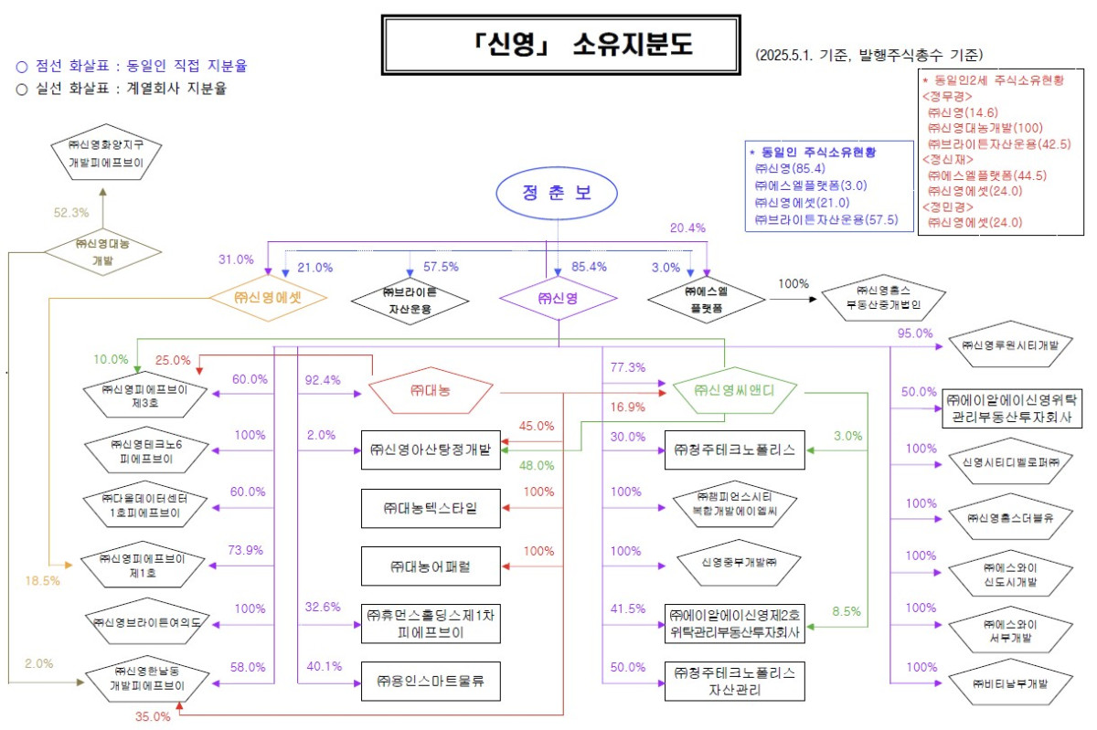ºÎµ¿»ê¾÷°è°¡ ½Å¿µ´ë³ó°³¹ßÀÇ ½ÇÀû ÁúÁÖ¿¡ ÁÖ¸ñÇÏ´Â ÀÌÀ¯´Â ÀÌ È¸»ç°¡ Á¤ÃẸ ½Å¿µ±×·ì ȸÀåÀÇ Àå³²ÀÎ Á¤¹«°æ »ó¹«°¡ ÁöºÐ 100%¸¦ º¸À¯ÇÑ °³ÀΠȸ»çÀ̱⠶§¹®ÀÌ´Ù. ½Å¿µ±×·ìÀº 2024³â Á¤ »ó¹«°¡ ´ëÁÖÁÖ(48%)¿´´ø ½Å¿µÇ÷¯½º¸¦ ÁöÁÖ»ç °ÝÀÎ ½Å¿µ°ú ÇÕº´½Ã۸ç Á¤ »ó¹«ÀÇ ½Å¿µ ÁöºÐÀ²À» 1%´ë¿¡¼ 14.57%±îÁö ²ø¾î¿Ã¸° ¹Ù ÀÖ´Ù.