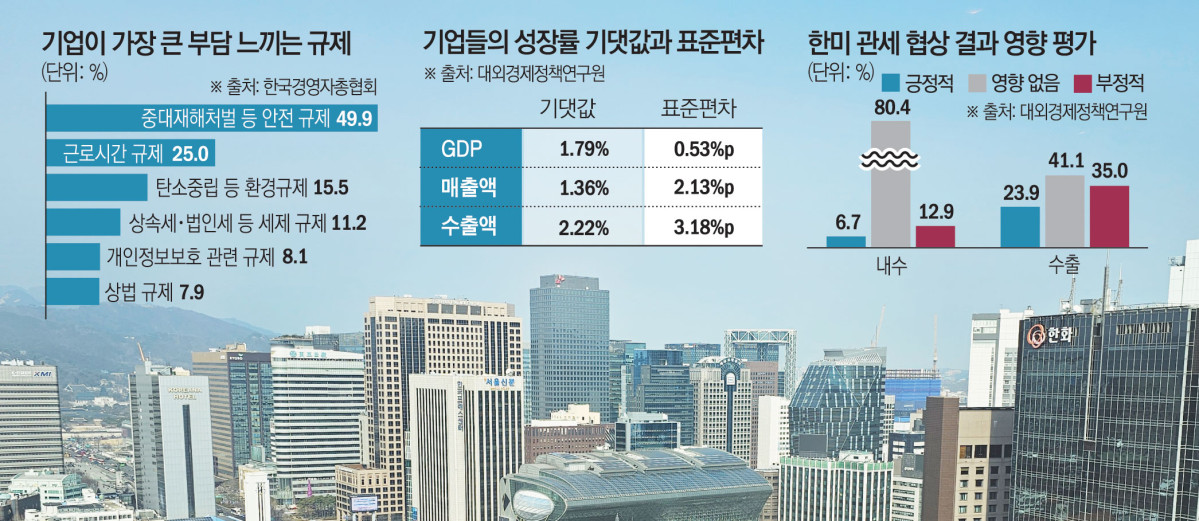 ¿©±â¿¡ ±¹³» ±ÔÁ¦ ºÎ´ãÀÌ °ãÄ¡¸é¼ ±â¾÷µéÀÇ Ã¼°¨ ¾Ð¹ÚÀº ´õ¿í Ä¿Áö°í ÀÖ´Ù. °°Àº³¯ ¹ßÇ¥ÇÑ Çѱ¹°æ¿µÀÚÃÑÇùȸÀÇ ¡®2026³â ±â¾÷±ÔÁ¦ Àü¸ÁÁ¶»ç¡¯¿¡¼ ±â¾÷µéÀÌ ¿ÃÇØ °¡Àå Å« ºÎ´ãÀ¸·Î ²ÅÀº ±ÔÁ¦´Â ¡®Áß´ëÀçÇØ ó¹ú µî ¾ÈÀü ±ÔÁ¦¡¯·Î 49.9%¿¡ ´ÞÇß´Ù. ÀÌ¾î ±Ù·Î½Ã°£ ±ÔÁ¦ 25.0%, ź¼ÒÁ߸³ µî ȯ°æ ±ÔÁ¦ 15.5% ¼øÀ̾ú´Ù.