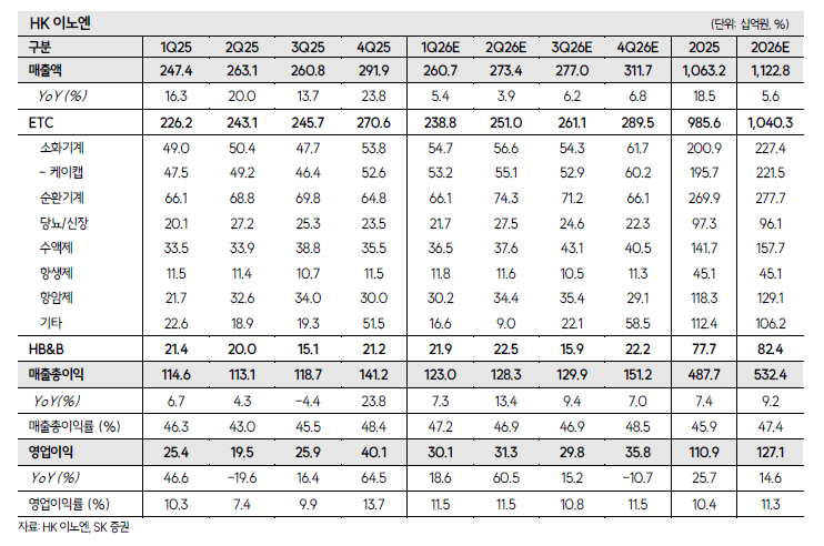 À̼±°æ SKÁõ±Ç ¿¬±¸¿øÀº "HKÀ̳뿣ÀÇ 26³â 1ºÐ±â ¸ÅÃâ¾×Àº 2607¾ï¿ø, ¿µ¾÷ÀÌÀÍÀº 301¾ï¿øÀ¸·Î ÄÁ¼¾¼½º ¸ÅÃâ¾× 2641¾ï¿ø ¹× ÄÁ¼¾¼½º ¿µ¾÷ÀÌÀÍ 291¾ï¿ø¿¡ ºÎÇÕÇÒ °ÍÀ¸·Î Àü¸ÁÇÑ´Ù"¸ç "±¹³» ó¹æ ½ÇÀû°ú Áß³²¹Ì Áö¿ªÀÇ ¼öÃâ ¼ºÀå¿¡ ÈûÀÔ¾î ÄÉÀÌĸ ¸ÅÃâÀº °ßÁ¶ÇÑ ¼ºÀåÀ» Áö¼ÓÇÒ °Í"À̶ó°í ¸»Çß´Ù.