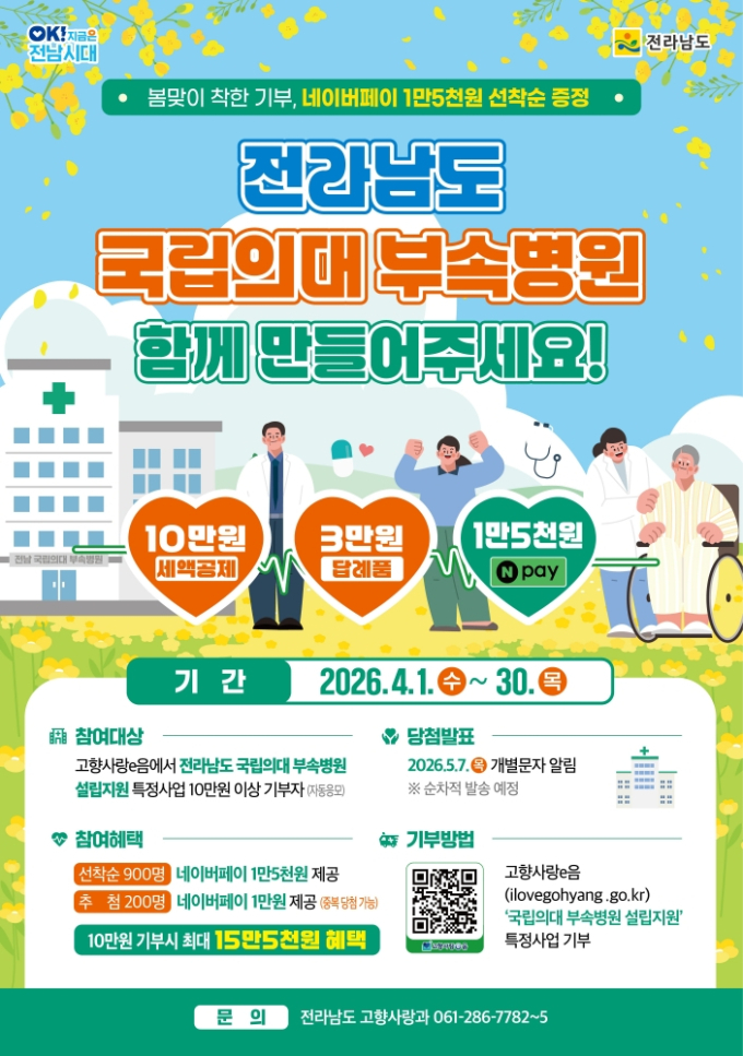 Àü¶ó³²µµ°¡ °íÇâ»ç¶û±âºÎÁ¦¸¦ Ȱ¿ëÇØ Áö¿ª ÀÇ·á ÀÎÇÁ¶ó È®Ãæ¿¡ ³ª¼±´Ù°í 16ÀÏ ¹àÇû´Ù. ±¹¸³ÀÇ´ë ºÎ¼Óº´¿ø ¼³¸³ »ç¾÷ Áß½ÉÀ¸·Î ±âºÎ Âü¿©¸¦ È®´ëÇϱâ À§ÇÑ È«º¸ À̺¥Æ®´Ù.