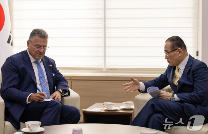 À§¼º¶ô û¿Í´ë ±¹°¡¾Èº¸½ÇÀåÀÌ 17ÀÏ ¹æÇÑ ÁßÀÎ ¸¶·Î½Ã ¼ÎÇÁÃʺñÄ¡ À¯·´¿¬ÇÕ(EU) ÁýÇàÀ§¿øÈ¸ Åë»ó¡¤°æÁ¦¾Èº¸ ÁýÇàÀ§¿øÀ» ¸¸³ª ÇÑ-EU °£ °æÁ¦¾Èº¸ Çù·Â °È¸¦ ³íÀÇÇß´Ù.
