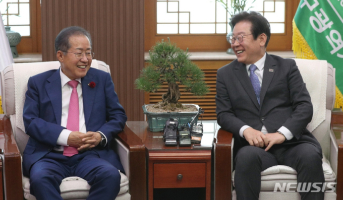 ÀÌÀç¸í ´ëÅë·ÉÀÌ 17ÀÏ È«ÁØÇ¥ Àü ´ë±¸½ÃÀå°ú ¿ÀÂùÀ» °âÇØ ºñ°ø°³·Î ¸¸³µ´Ù. ÅëÇÕ Â÷¿øÀÇ ¿òÁ÷ÀÓÀ¸·Î Ç®À̵ȴÙ. È« Àü ½ÃÀåÀº À̸í¹Ú Àü ´ëÅë·É¿¡ ´ëÇÑ Á¦ÇÑÁ¶Ä¡ ÇØÁ¦(ÀüÁ÷ ´ëÅë·É ¿¹¿ì º¹¿ø)¿Í ´ë±¸¡¤°æºÏ ½Å°øÇ× ±¹°¡ Áö¿øÀ» ¿äûÇÑ °ÍÀ¸·Î ¾Ë·ÁÁ³´Ù.