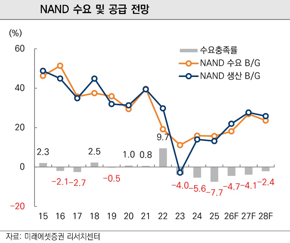 ¹ÝµµÃ¼ ½ÃÀåÀÇ ÁÖµµ±ÇÀÌ °í´ë¿ªÆø¸Þ¸ð¸®(HBM)¸¦ ¾Õ¼¼¿î µð·¥(DRAM)¿¡¼ ³½µåÇ÷¡½Ã(NAND Flash)·Î ºü¸£°Ô ÀüÀ̵ǰí ÀÖ´Ù. ÀΰøÁö´É(AI) ÇнÀÀ» ³Ñ¾î Ãß·Ð ¿µ¿ªÀÇ È®ÀåÀ¸·Î ±â¾÷¿ë ¼Ö¸®µå ½ºÅ×ÀÌÆ® µå¶óÀ̺ê(eSSD) ¼ö¿ä°¡ Æø¹ßÀûÀ¸·Î ´Ã¾î³ª´Â ¹Ý¸é, °ø±ÞÀº À̸¦ µû¶ó°¡Áö ¸øÇÏ´Â ¡®º´¸ñ Çö»ó¡¯ÀÌ ½ÉÈÇϸ鼴Ù. Áõ±Ç°¡¿¡¼´Â ³½µå°¡ D·¥ÀÇ ¼öÀͼºÀ» Ãß°ÝÇÏ¸ç ¹ÝµµÃ¼ ±â¾÷µéÀÇ ÇϹݱâ ÀÌÀÍ ¼ºÀåÀ» °ßÀÎÇÒ °·ÂÇÑ ¸ð¸àÅÒÀÌ µÉ °ÍÀ¸·Î ³»´Ùº¸°í ÀÖ´Ù.